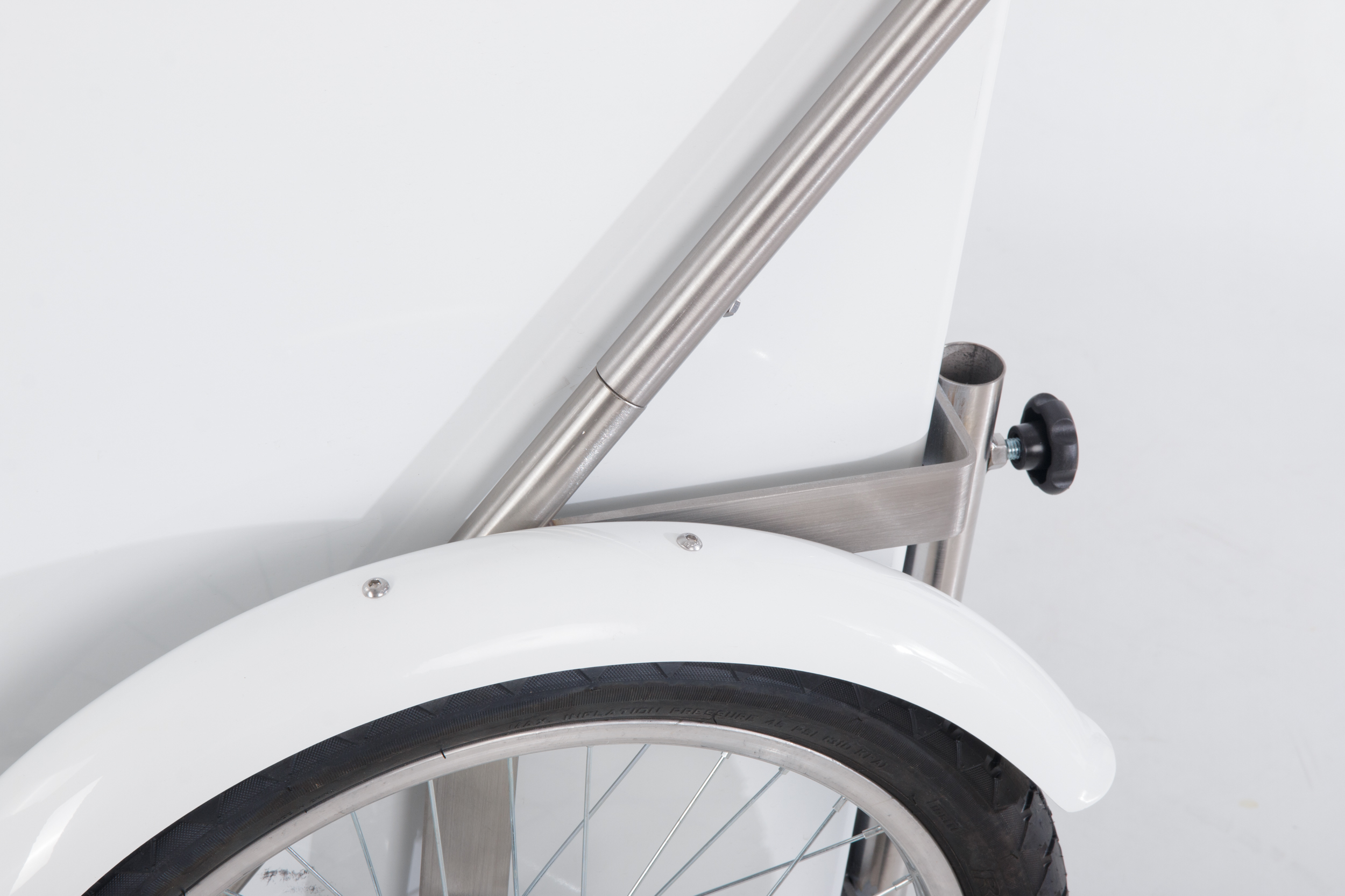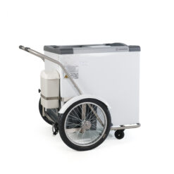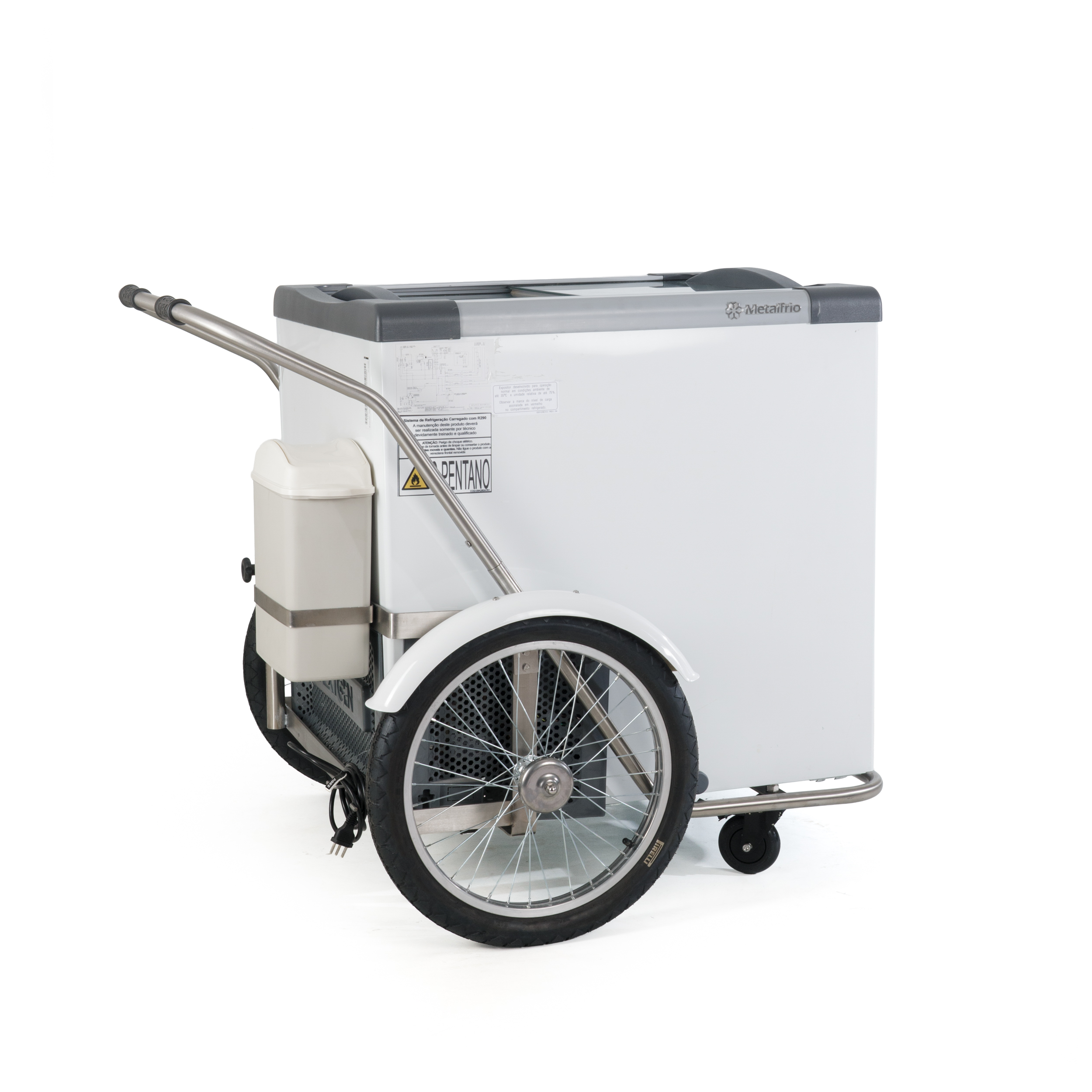 Equipado com freezer elétrico Metalfrio NF20 (185 litros brutos), o carrinho garante excelente conservação de produtos, perfeito para operações em eventos, hotéis, parques ou pontos de venda itinerantes.