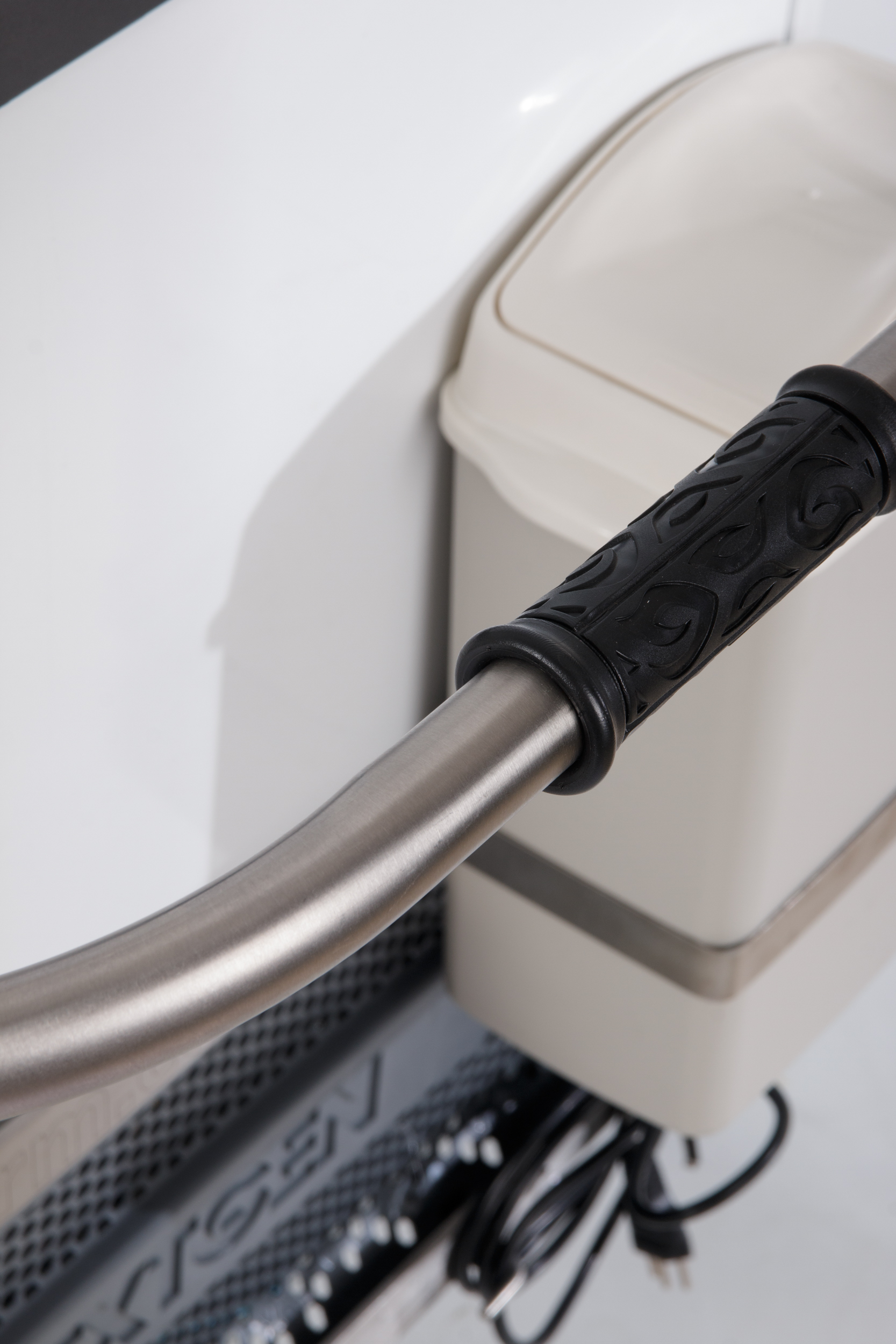 Suporte para guarda-sol e lixeira integrados, agregando praticidade