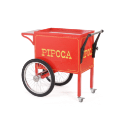 A combinação da pipoqueira com o carrinho proporciona uma apresentação profissional, facilidade de transporte e organização para a operação do dia a dia.